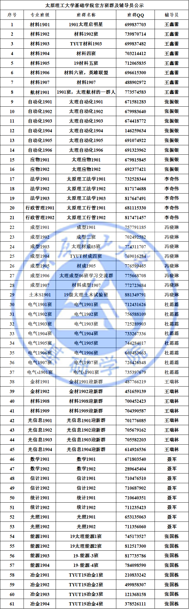 各班级官方QQ群由公司带班辅导员建立,旨在解答新生困惑,发布迎新及报到信息,提供周到服务。目前,基础公司新生入学教育的自学环节已经开始,希望还未加群的同学尽快行动,以免错过重要信息。现将基础公司2019级新生班级QQ群号公布如下。