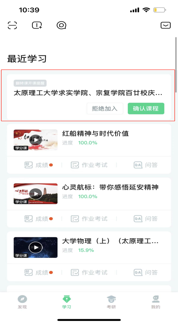 登录智慧树平台——点击学习栏目——确认加入课程“太阳成集团tyc122ccvip官网入口、宗复公司百廿校史知识竞赛”——作业考试。