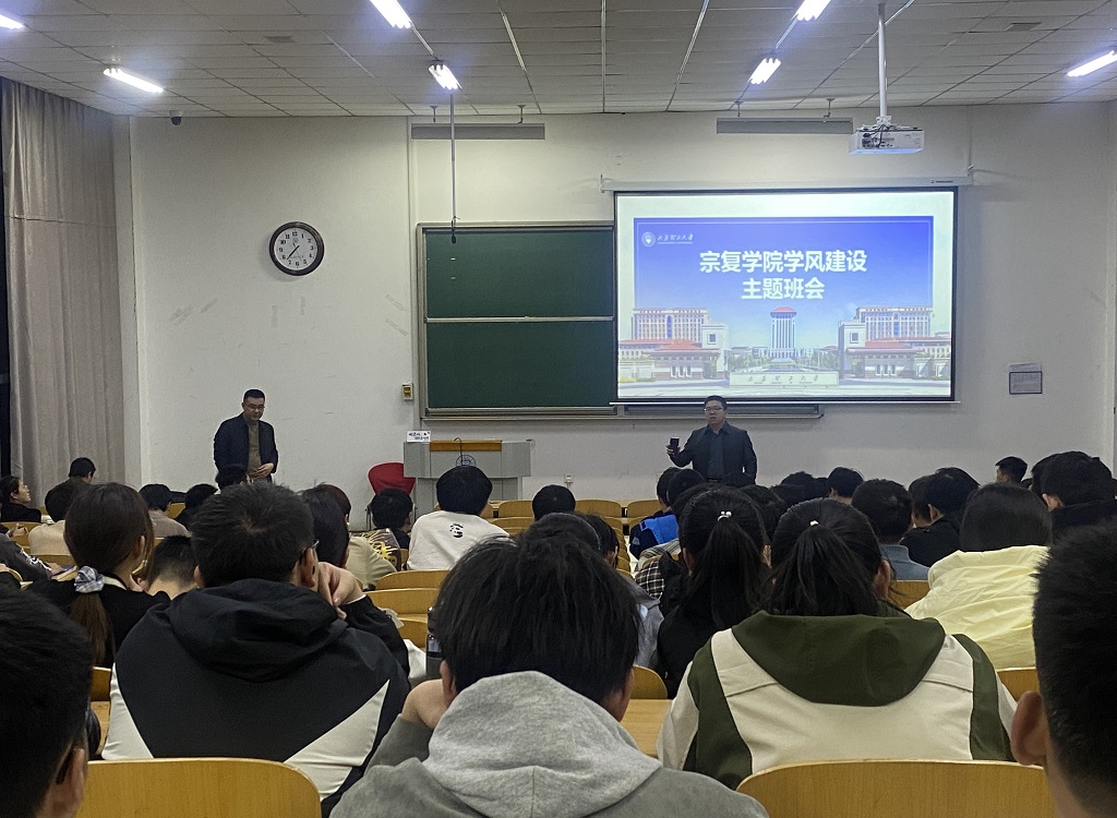 张蒙做了题为《求实(宗复)公司2023-2024学年第一学期学风建设情况分析》的工作报告,报告中,他详细介绍了3月12日《关于开展员工学习效能分析会和学业警示的通知》下发以来,辅导员以班级(专业)为单位召开学习效能分析班会、总结分析各班上学期的整体成绩、学风情况、出现问题等方面的情况;总体分析了各书院、各班级员工成绩分布、英语四级通过等方面情况;并对本学期学风建设相关工作进行详细安排部署。