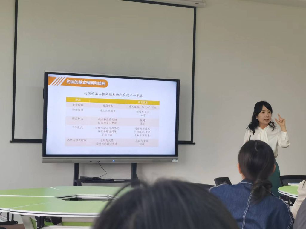 邓静以其丰富的专业知识和实践经验为全院辅导员带来了一场生动且深刻的培训。在专业知识技能传授环节,她从与被访者建立友好关系入手,详细讲解了辅导的目标、原则及常用技巧方法。她强调,辅导员在谈心谈话时,应坚持以员工为中心,善于运用倾听、共情、反馈等基本技巧,与员工建立良好关系。在案例分析环节,她深入剖析,向辅导员们展示了如何运用专业知识与技能去识别、评估、处理问题。