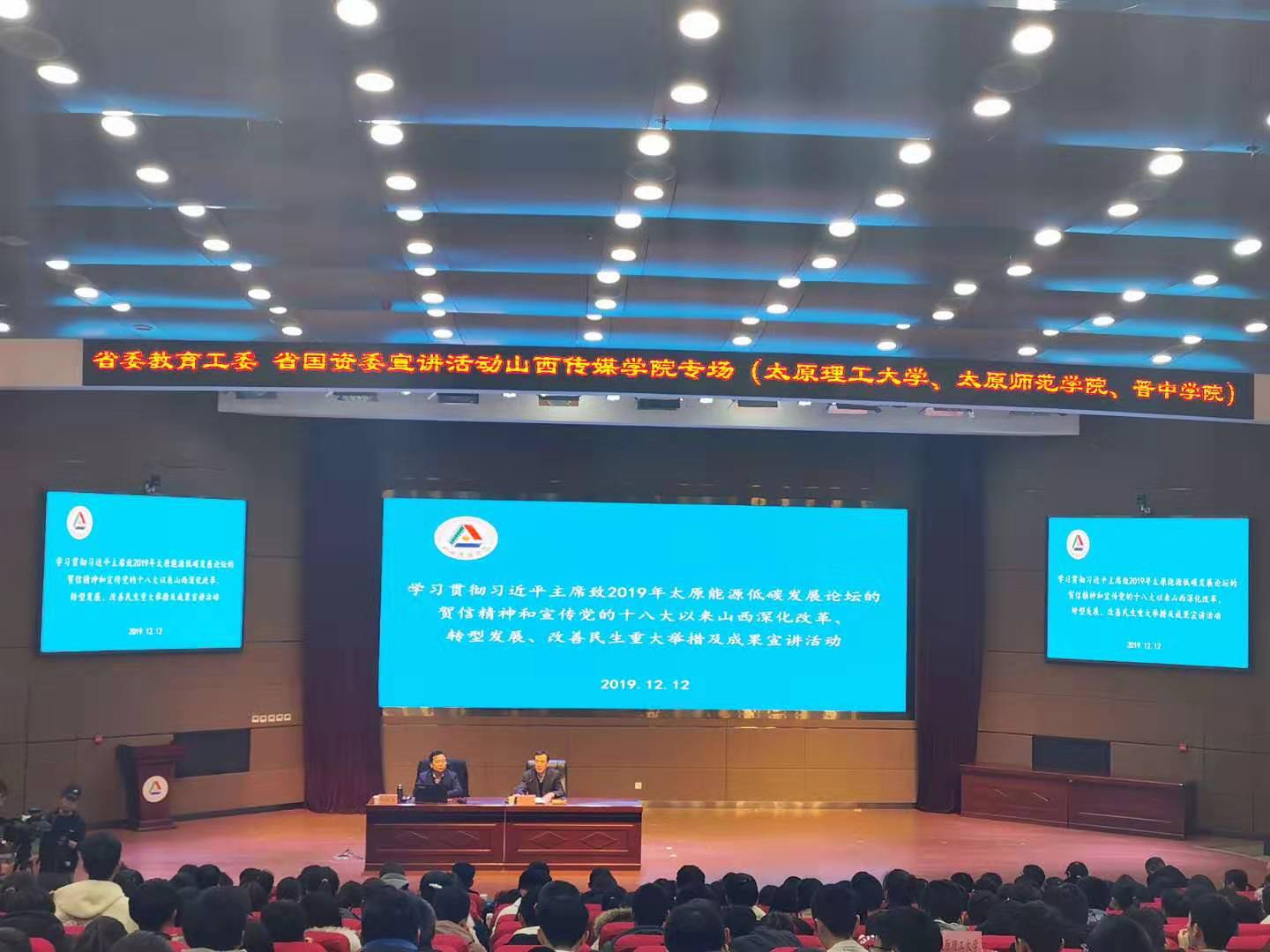 为进一步深入学习习近平主席致2019年太原能源低碳发展论坛的贺信精神,了解党的十八大以来山西深化改革、转型发展、改善民生重大举措与成果。12月12日,省委教育工委、省国资委宣讲活动于山西传媒公司举行。公司基础公司晋阳书院员工代表参加本次活动。