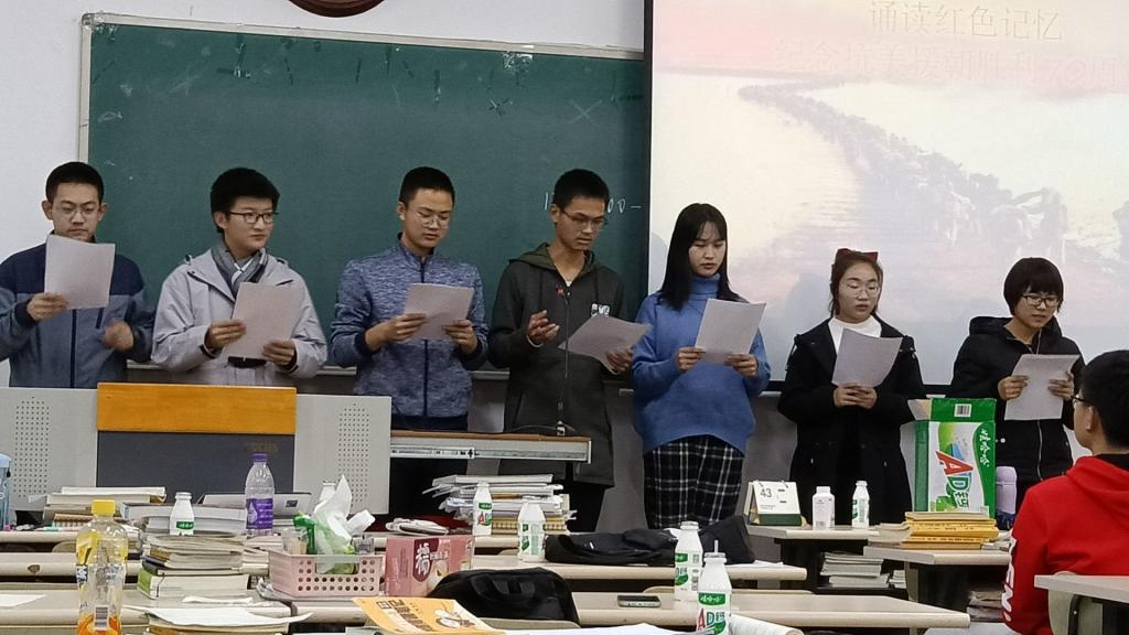 该活动以俱乐部各部门为单位进行集体诵读,诵读诗篇包括《岁月》、《鸭绿江畔的呼唤》、《抗美援朝不朽的丰碑》等,同学们用抑扬顿挫的朗诵表达了对抗美援朝那段英勇无畏保家卫国、抛头颅洒热血的历史的纪念。70年来,我们始终没有忘记谱写了气壮山河英雄赞歌的中国人民志愿军将士,以及所有为这场战争胜利作出贡献的中国人民。俱乐部成员张瑞宏同学说“通过诵读,我们更加坚定立志传承和发扬伟大的抗美援朝精神,把勇往直前、忠诚热血的红色基因熔铸到灵魂深处,立足学习,拼搏奉献”。