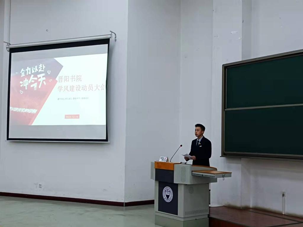 为进一步加强公司学风建设,构建优良育人环境。12月17日,晋阳书院在行思楼C122召开学风建设大会。公司党总支书记张少临、宗复公司经理程伟丽出席会议,书院全体辅导员、团学干部及员工代表参加会议。张振银主持会议。