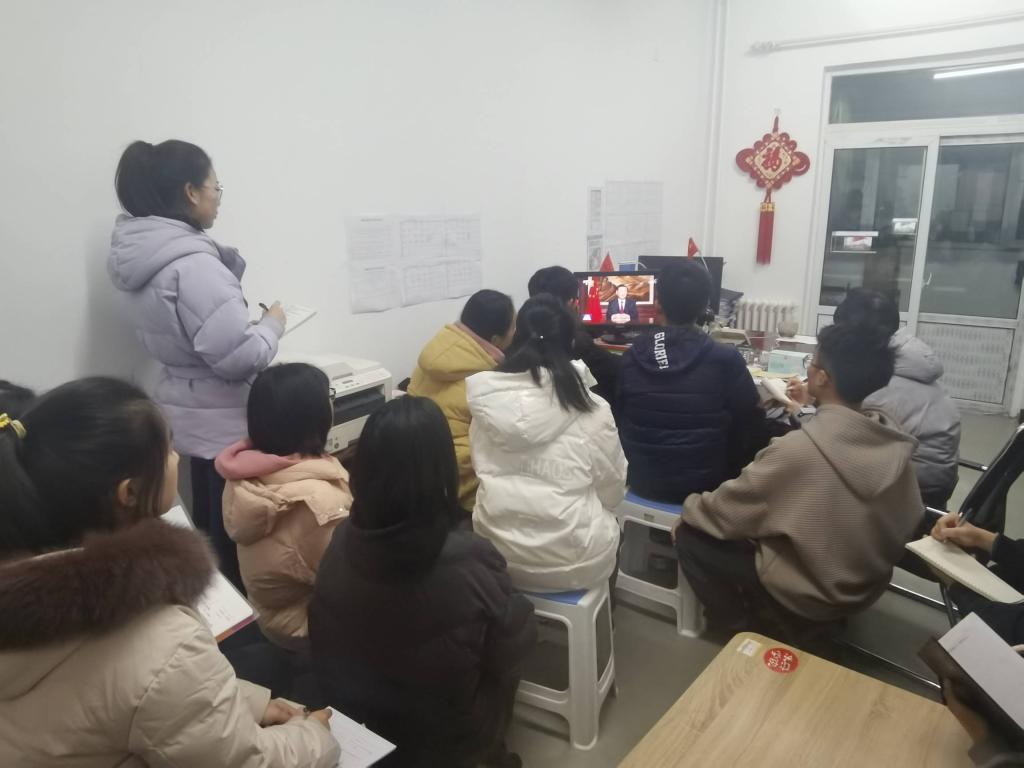 习近平总书记在新年贺词中,回顾了过去一年党和国家取得的非凡成就,回望了党风云激荡的百年历史征程,赞美了每一位平凡英雄的拼搏奋斗,惦念着人民群众的所思所盼所忧,温暖人心、催人奋进。收看过程中,全体同学认真聆听、细心领会、倍受鼓舞,不时记录下暖心提气、振奋人心的热词金句。