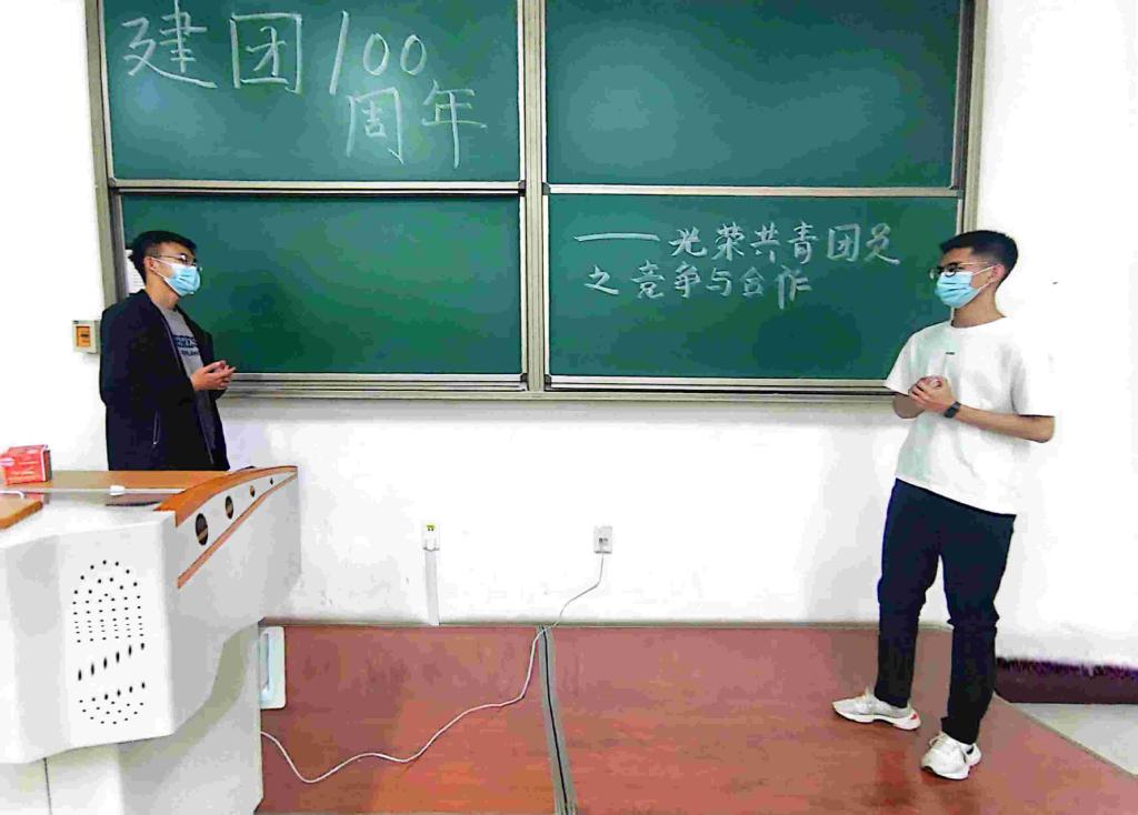 在活动前期筹备阶段,支部书记确认辩题并组织支部成员进行报名,阐明辩论规则及要求:本次辩论赛采取5人一队,分3场就“竞争比合作更能促进个人素质增长”、“合作比竞争更能促进个人素质增长”展开辩论,要求充分使用百年团史的相关事迹进行辩论。