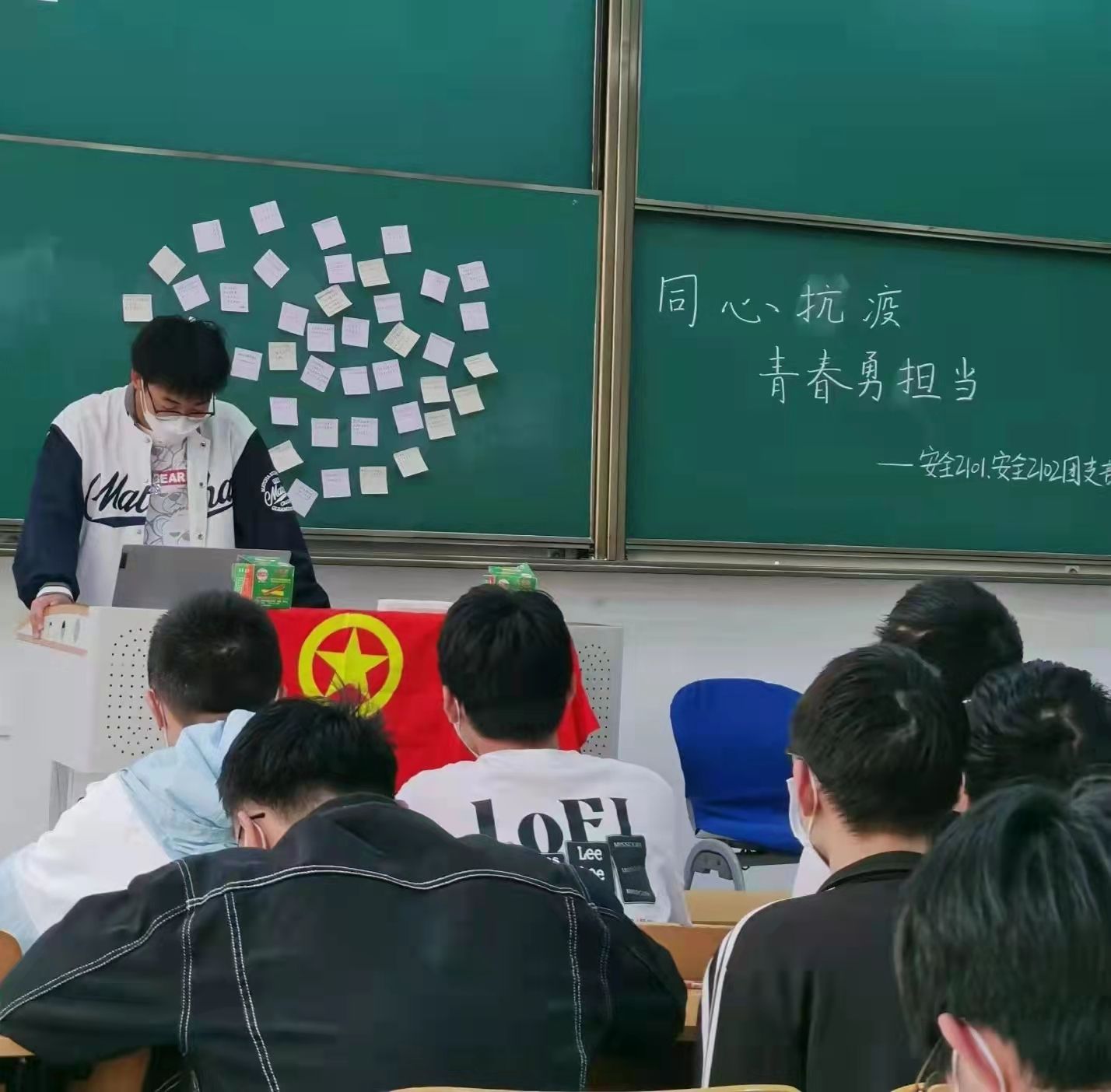 万物复苏必有时,疫去安来春可期。在这芳菲四月,为使团支部全体青年员工更加深入学习了解疫情防控知识,提高自身防控意识,积极配合公司疫情防控工作,齐心协力攻克难关,打赢疫情防控阻击战,在团总支统一安排下,4月26日16时,安全2101、2102团支部联合组织开展了“同心抗疫,青春勇担当”主题团日活动。