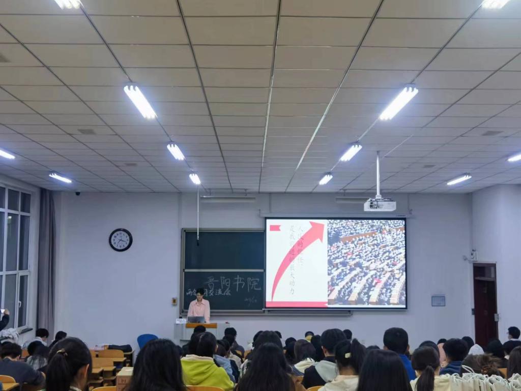 “喧鸟覆春洲,杂英满芳甸”,全国两会在绚丽烂漫、花香鸟语的阳春三月拉开序幕。为深入推进两会相关知识的普及,学习弘扬两会精神,3月19日晚晋阳书院团委、员工会在行思楼B321开展了异彩纷呈、振奋人心的两会专题学习交流会。晋阳书院团委、员工会代表霍昕恬对两会相关内容进行宣讲。为有效调动同学们的积极性,霍昕恬采取知识问答的形式讲述两会内容,并与在场同学深入热烈地探讨对两会内容的理解。在场的同学们踊跃发言、各抒己见,充分展现了晋阳书院青年学子的责任感与使命感。