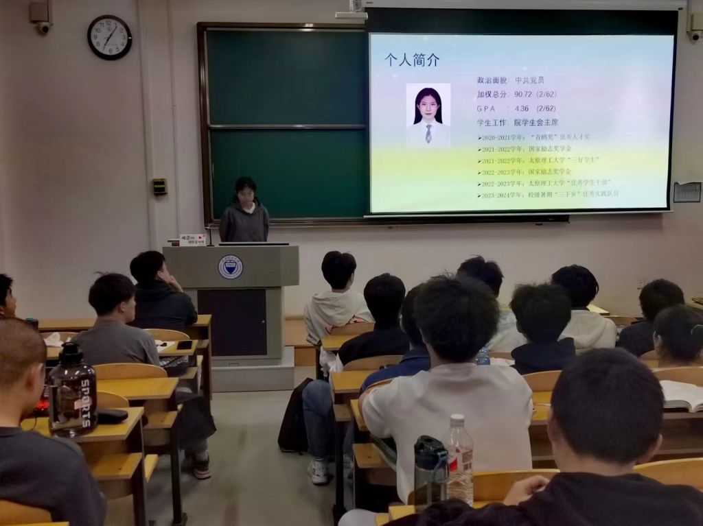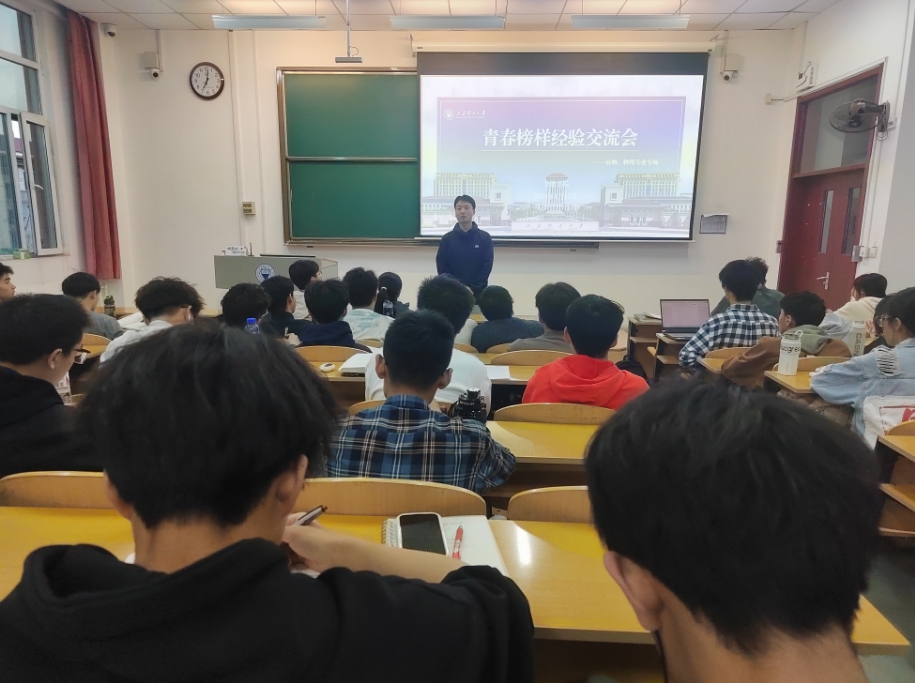 榜样引领方向,初心烛照未来。为推进学风建设,帮助大一学子更好地认识老员工活,明确自己的目标,应用物理学和物理学专业于4月15日在行勉楼A204举办了青春榜样经验交流会。本次交流会邀请到了应物2201班何力与应物2002班秦先茹为同学们做经验交流,23级应物、物理全体同学参会,分享会由辅导员范兵主持。
