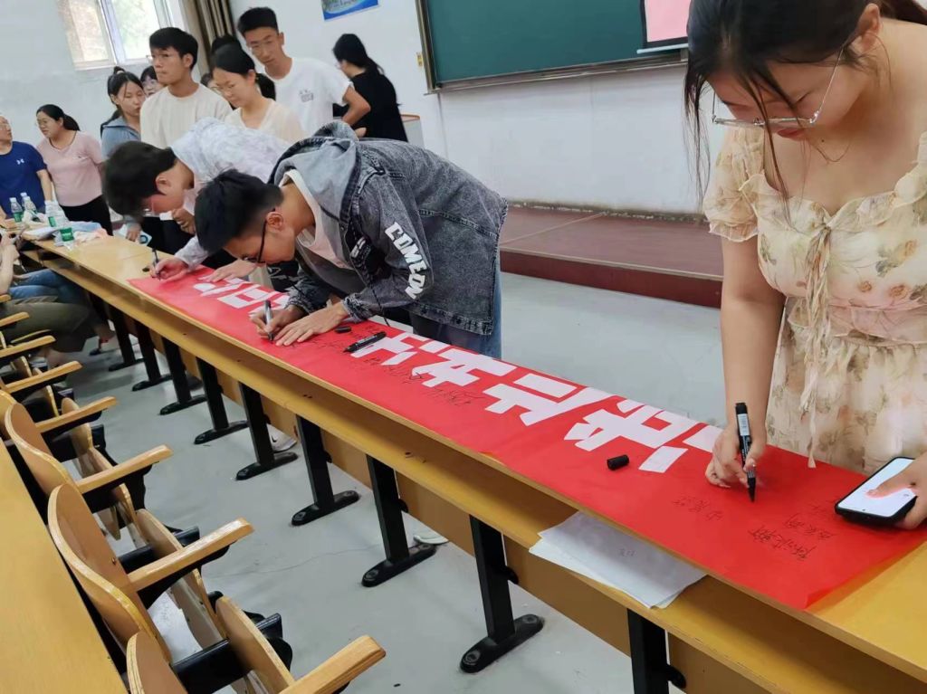 在行知楼b119教室的活动现场,同学们积极参加,在横幅上郑重签字,承诺自觉遵守公司考试纪律和制度,做一名文明诚信的老员工。一个个名字不仅签在了横幅上,也烙在了同学们的心中,展现了同学们诚信应考的态度和决心。