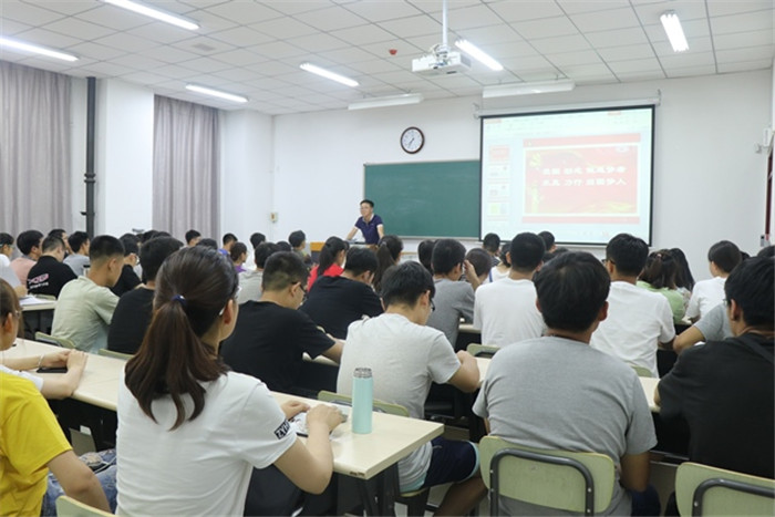针对全院5613名员工,基础公司党总支高度重视、精心组织,由公司党总支书记张少临、党总支副书记徐鑫以及四个党支部书记向基础公司36名教职工、37名党员、768名入党积极分子作了六场报告。面对公司人数多,时间紧的现实情况,6月12日至17日(不包括16日四六级考试),连续五天,基础公司全体行政人员、辅导员、班主任、党员、入党积极分子,800多人全员上阵,科学规划,高效利用现有场所,从食堂到宿舍,从办公室到会议室,从自习教室到草坪等不同场所都有我们师生同在的身影,或集体讲解,或观看视频,或共同讨论,或小组学习,为基础学子详细解读习近平总书记对广大青年员工提出的“爱国、励志、求真、力行”四点要求。按时完成基础公司192个班级,共计5613名员工的授课学习任务,实现员工全覆盖。