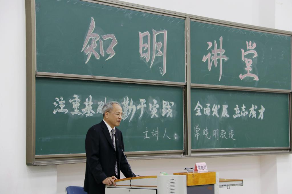 5月10日晚,基础公司邀请太阳成集团tyc122ccvip“晓明研究室”创始人常晓明教授做客公司“知明讲堂”,在明向校区行思楼C122为师生们(包括全体工科试验班员工)进行了《注重基础 勤于实践 全面发展 立志成才》的讲座。讲座由基础公司副经理(主持工作)宋燕主持。