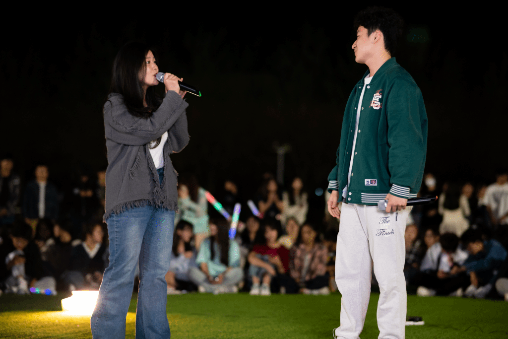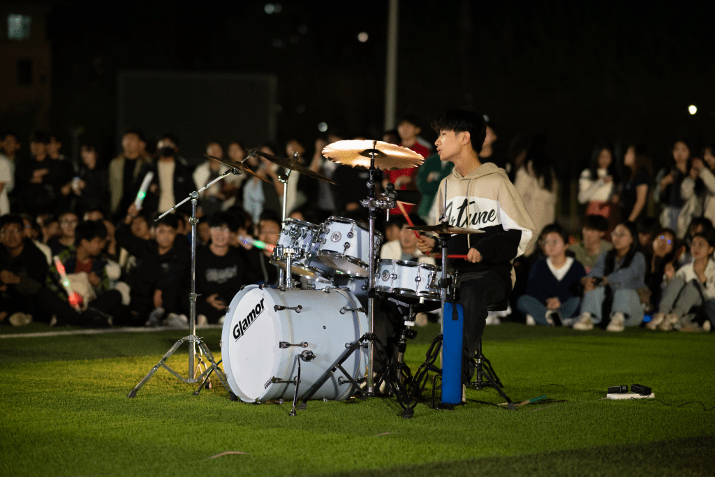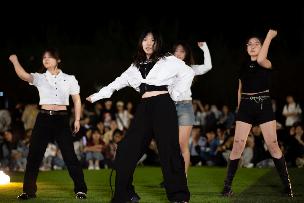 夜幕降临、星光熠熠下的操场,同学们热情挥舞着荧光棒,和着歌声、随着舞姿共同摇曳,个个精心编排的节目“声”入人心、舞动飞扬。广阔的操场中,观众自发围拢出的舞台正上演着惊艳全场的节目。一首高亢的经典歌曲《海阔天空》引得全场合唱,独唱《我是如此相信》尽显唱功也将现场氛围带入高潮,舞蹈《拉丁串烧》让人们提前感受了初夏的热情,《匆匆那年》的旋律下即将毕业离校的同学突然红了眼眶。随着夜晚和煦的暖风,一阵阵青春洋溢、风华正茂的气息扑面而来。